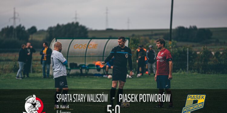 W niedzielę, 4 maja 2025 roku, Piasek Potworów przegrał na wyjeździe z liderem klasy B, Spartą Stary Waliszów, 5:0 w ramach 16. kolejki rozgrywek. Mecz, rozegrany o godz. 11:00 na boisku w Starym Waliszowie, pokazał różnicę klas między drużynami, choć pierwsza połowa dawała nadzieję na wyrównaną walkę.