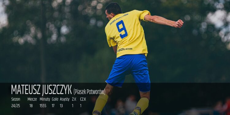 Mateusz Juszczyk był jednym z liderów Piaska – zarówno na murawie, jak i poza nią. Pomimo trudności, nie bał się odpowiedzialności i do końca sezonu walczył o każdy punkt, pokazując zaangażowanie, pasję i charakter. Jego statystyki indywidualne budzą uznanie.
