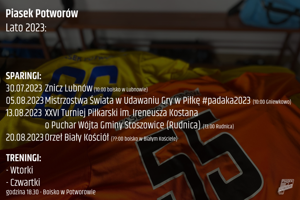 Nasza drużyna rozpoczyna przygotowania do nowego sezonu. Treningi rozpoczynamy w lipcu i będą się odbywały we wtorki oraz czwartki na boisku sportowym w Potworowie o godzinie 18:30. Pierwszy trening odbędzie się 25.07.2023!